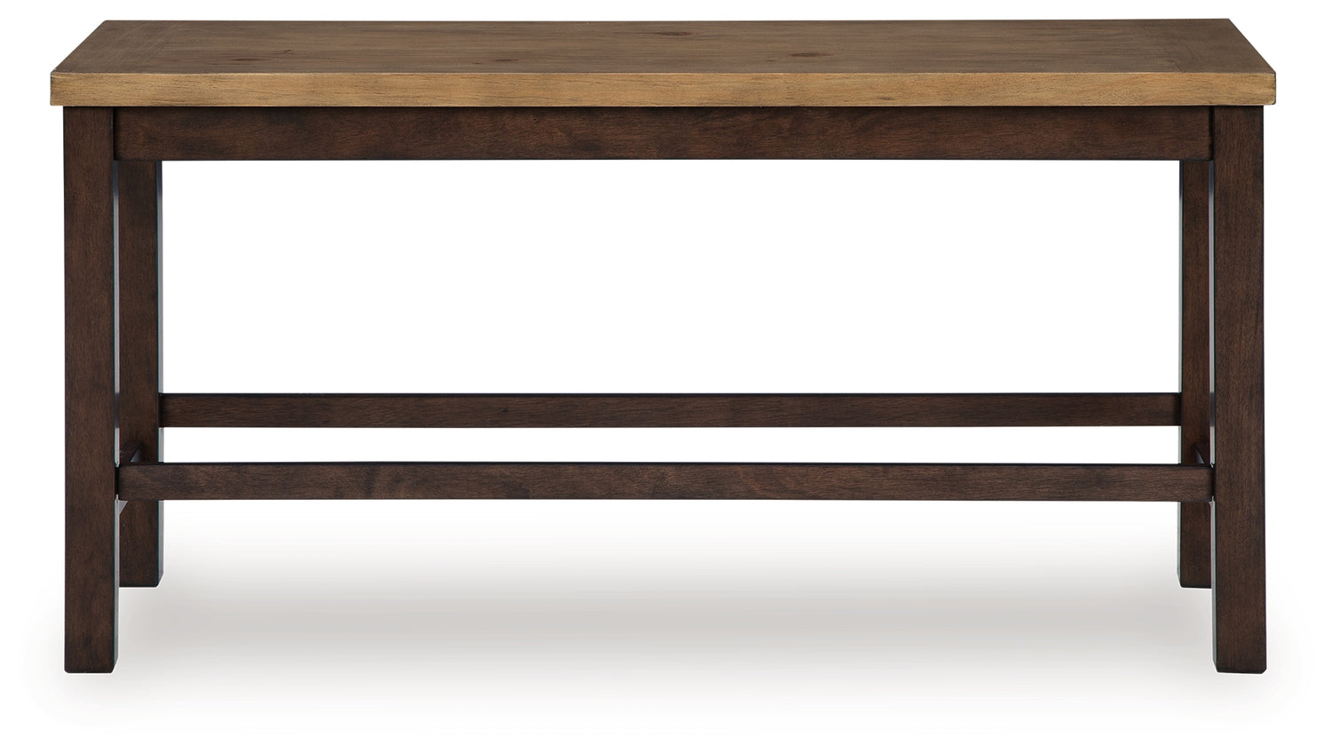 Add a dash of enduring design to your home with this counter height dining bench. Its two-tone look contrasts light and dark chestnut finishes for a touch of casual rustic charm that’s both current and timeless. It’s a simply striking choice that lends a seamless blend of form and function wherever friends and family gather.