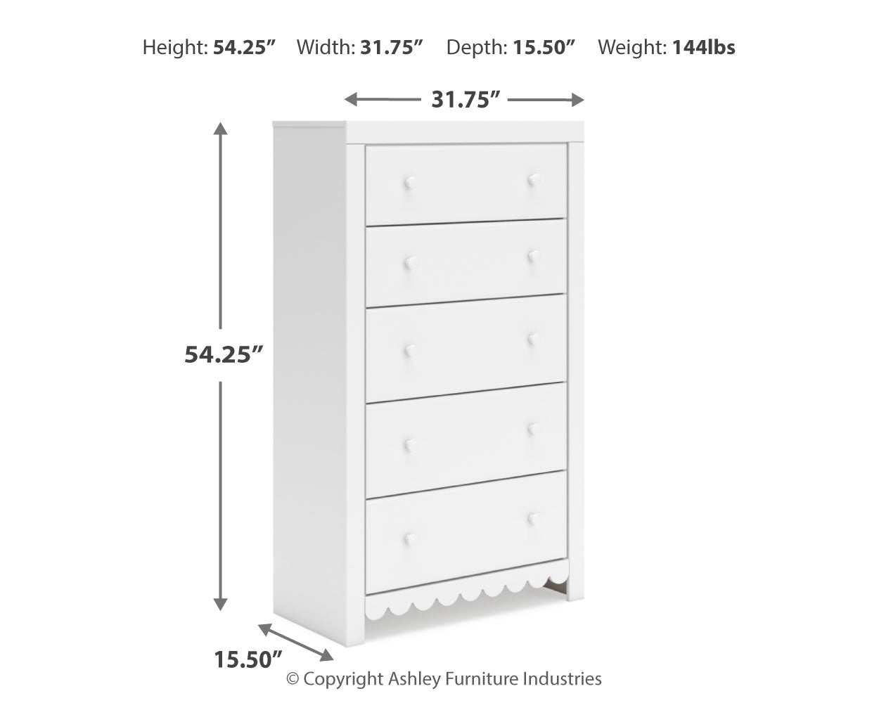 Make getting ready for the day (or bed) that much more magical with this chest of drawers. Charmingly cute with its scalloped detailing, it appeals to both her sense of playful whimsy and your love for modern design. And the chest's crisp white finish gives you the versatility to pair it with existing decor.