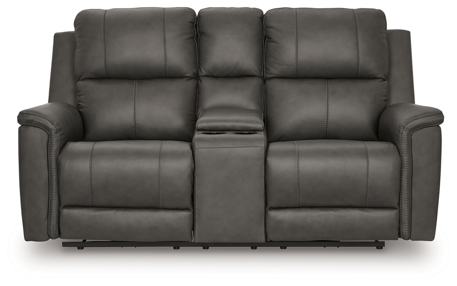 Are you ready to experience next-level relaxation? This power reclining loveseat with console combines supple leather and faux leather upholstery with smart features that make unwinding effortless. With just one touch, you can adjust your position while the power headrest keeps you perfectly aligned for reading or binge-watching your favorite shows. The Zero³ reclining requires minimal space between wall and chair back while delivering fully supported, fully reclined comfort at the touch of a button. Thoughtfully designed with sculptural padded arms and built-in USB charging, this spacious piece will be your new favorite spot to recharge—both yourself and your devices. And how about those handy cup holders?