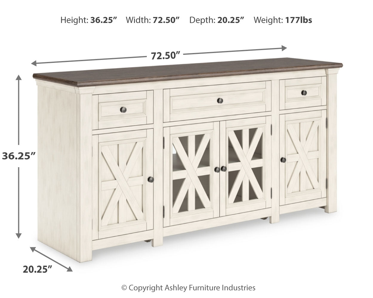 Whether your style is farmhouse fresh, shabby chic or country cottage, you’ll find this TV stand perfectly in tune. Its two-tone finish pairs a trendy textured antiqued white with weathered gray for that much more quaint character. Charming elements include crossbuck-adorned cabinet doors with glass inlays for peek-through flair. Ample storage space and cutouts for wire management nicely accommodate your media needs.