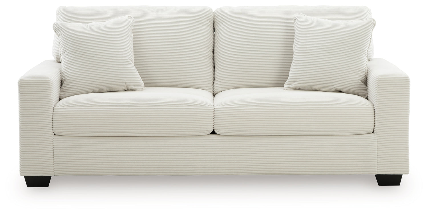 The crisp neutral hue and striking design details of this chair create a living room that expertly reflects your modern taste. For irresistibly cool textural appeal, the ultra-soft fabric is enhanced by a small-scale corded look. With a clean-lined silhouette complete with track arms, this chair allows you to take a trend-right approach to everyday living.