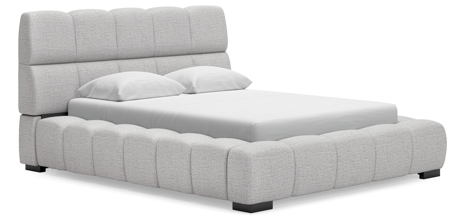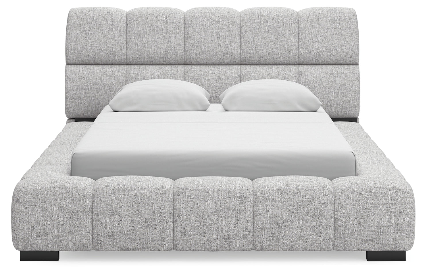 A divine merger of casual and contemporary design, this queen upholstered bed is the upgrade you've been dreaming of. Plush, deep pillowed tufting creates an impressive silhouette that's just as comfortable as it is stylish. And the textured light gray Next-Gen Nuvella™ performance fabric is soft and easy to clean. Now there's a bed with staying power.
