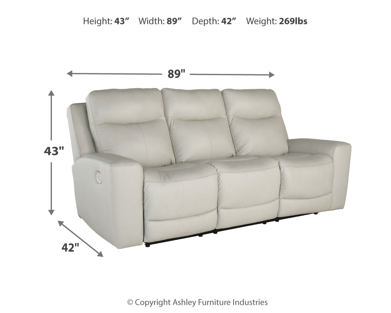 PWR REC Sofa with ADJ Headrest | 89" | 42" | 43" |