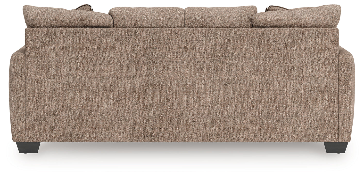 Transitional and right on trend. This sofa’s upholstery is a delightful change from the ordinary, with hints of soft brown giving the gray hue added depth. It’s punctuated with chic accent pillows in an eye-catching, stylized stripe design. Whether you're hosting friends and family or relaxing solo, this sofa invites homey, comfortable character into your space.